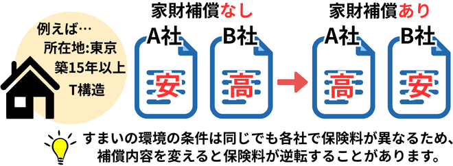 火災保険を安くするには、火災保険の一括見積もりサービスを利用して複数の保険会社の保険料を比較してみましょう。同じ補償内容であっても保険会社によって保険料に差がありるので、加入している火災保険と同じ内容で安い保険会社が見つかるかもしれません。2.不要な補償を外す